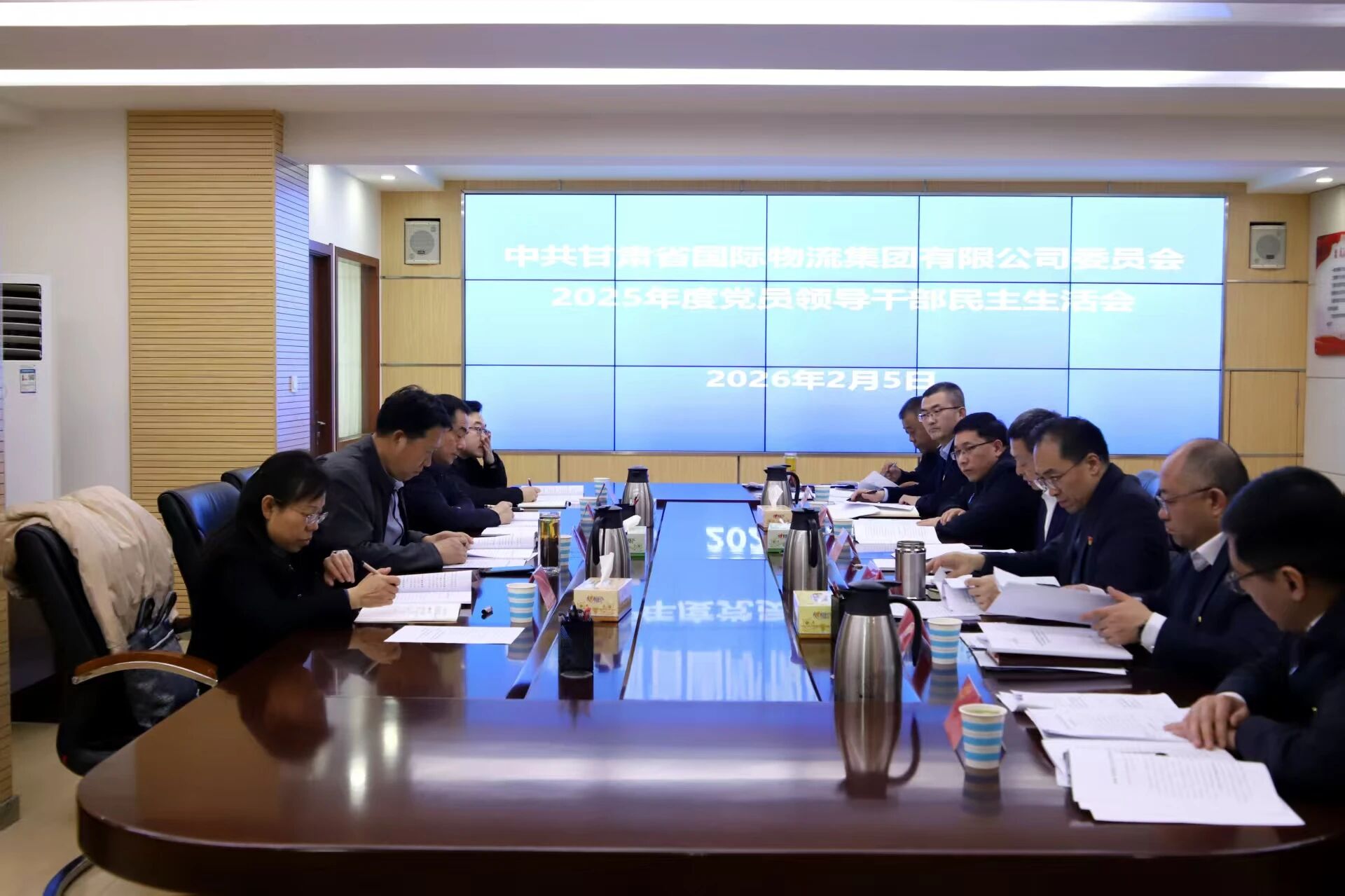 2月5日下午,甘肅國際物流集團黨委召開2025年度黨員領導干部民主生活會,黨委書記、董事長張鐵強主持會議并作表態(tài)發(fā)言。省委第三十督導組組長陳發(fā)述一行到會指導。