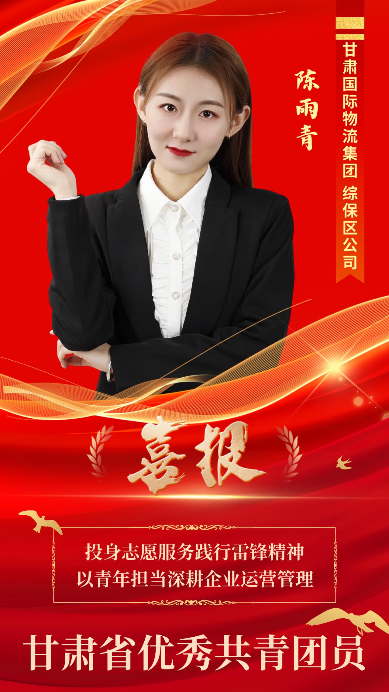近日,甘肅省人力資源和社會(huì)保障廳、甘肅省教育廳、共青團(tuán)甘肅省委、甘肅省青年聯(lián)合會(huì)、甘肅省少工委等部門聯(lián)合發(fā)文,對(duì)全省各領(lǐng)域涌現(xiàn)出的先進(jìn)青年集體和個(gè)人進(jìn)行表彰,甘肅國(guó)際物流集團(tuán)路港公司李偉智獲“甘肅青年五四獎(jiǎng)?wù)隆睒s譽(yù)稱號(hào),綜保區(qū)公司陳雨青獲“甘肅省優(yōu)秀共青團(tuán)員”榮譽(yù)稱號(hào)。