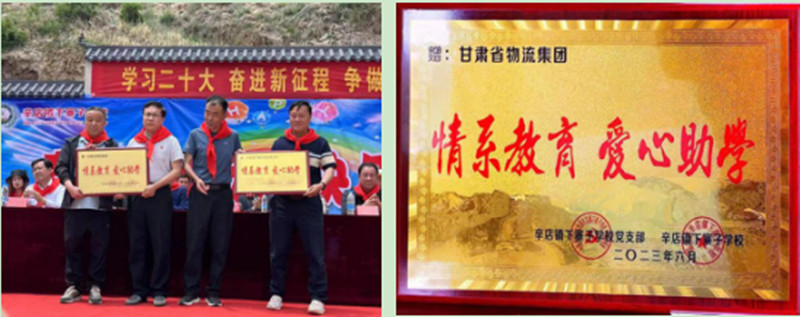 為甘肅物流集團(tuán)頒發(fā)了“情系教育 愛(ài)心助學(xué)”榮譽(yù)匾牌