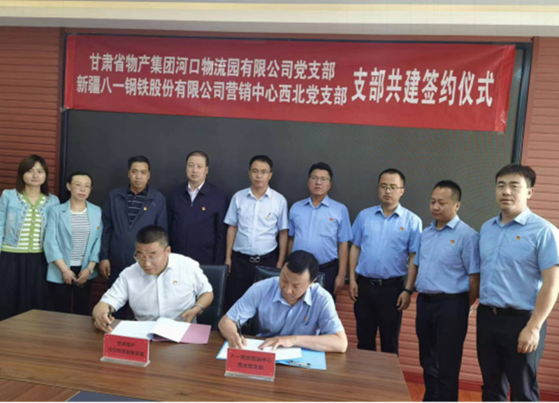 為深入開展學(xué)習(xí)貫徹習(xí)近平新時代中國特色社會主義思想主題教育,加強基層黨組織建設(shè),創(chuàng)新國企黨建新模式,進一步激發(fā)黨組織發(fā)展活力,實現(xiàn)資源共享和優(yōu)勢互補,5月24日下午,甘肅物流集團河口物流園第二黨支部與新疆八一鋼鐵營銷中心西北黨支部聯(lián)合開展支部共建活動,并舉行黨建結(jié)對共建簽約儀式。